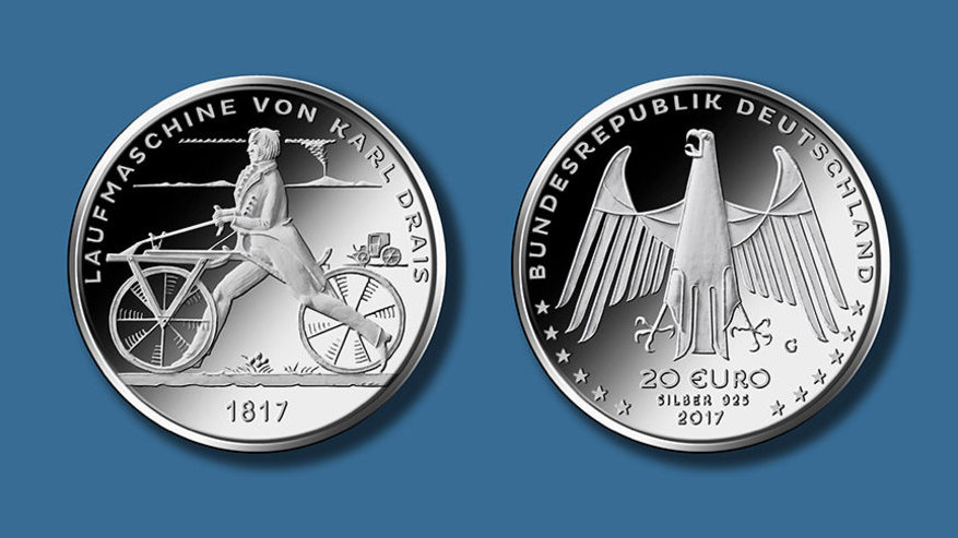 | Das Bundesfinanzministerium legt Wert auf die Feststellung, dass es im juristischen Sinne gar keine Falschmünze fabrizieren kann. Demnach ist eine staatliche Münze auch dann echt, wenn sie falsch ist. D.h. im vorliegenden Fall der Gedenkmünze zum 200jährigen Jubiläum der Laufmaschine im Juni 2017, dass Fehldarstellungen offensichtlich hingenommen werden. Leider enthält der Entwurf drei Fehler: Und zwar wird der Erfinder des ersten einspurigen Zweirads der Welt Karl Drais benannt. Er hieß jedoch Karl von Drais. Warum ihn in heutiger Zeit ein Professor eigenmächtig über mehr als drei Jahrzehnte im Lebenslauf rückwirkend ent-adelt hat, bleibt ein Rätsel. Immerhin hatte der Freiherr während der Badischen Revolution 1849 seinen Adelstitel vorrübergehend abgelegt, aber das hat mit der spektakulären Erfindung von 1817 nichts zu tun. Im Hintergrund des Münzentwurfs ist schemenhaft eine rauchende Erhebung zu sehen, die den indonesischen Vulkan Tambora darstellen soll. Dessen Ausbruch 1815 wiederum war angeblich die Initialzündung für die Erfindung des Fahrrads bzw. seines Vorläufers. Dies zumindest behauptet der besagte Professor der Physik, Hans-Erhard Lessing. Er verweist auf die damals weltweiten Aschewolken, die zu einer Klimaverschlechterung und Ernteeinbußen geführt hatten. Seine Schlussfolgerung jedoch, dies müsse in Mannheim ein massenhaftes Pferdesterben wegen Futtermangels ausgelöst haben, ist ohne jeden Beleg. Die Rheinebene war sowieso weniger stark betroffen. Laut Mannheimer Intelligenzblatt vom 3. und 24. Juni 1817 war die Versorgung von Mensch und Tier gesichert. Damit entfällt das Argument, ein Pferdemangel habe den Freiherrn von Drais dazu inspiriert, einen Pferdeersatz zu erschaffen. Insofern ist auch die pferdelose Kutsche als Symbol im Münzentwurf ein Fake. Zumal ein reger Kutschverkehr im Mannheimer Intelligenzblatt vom Frühjahr 1817 nachgewiesen ist. |
